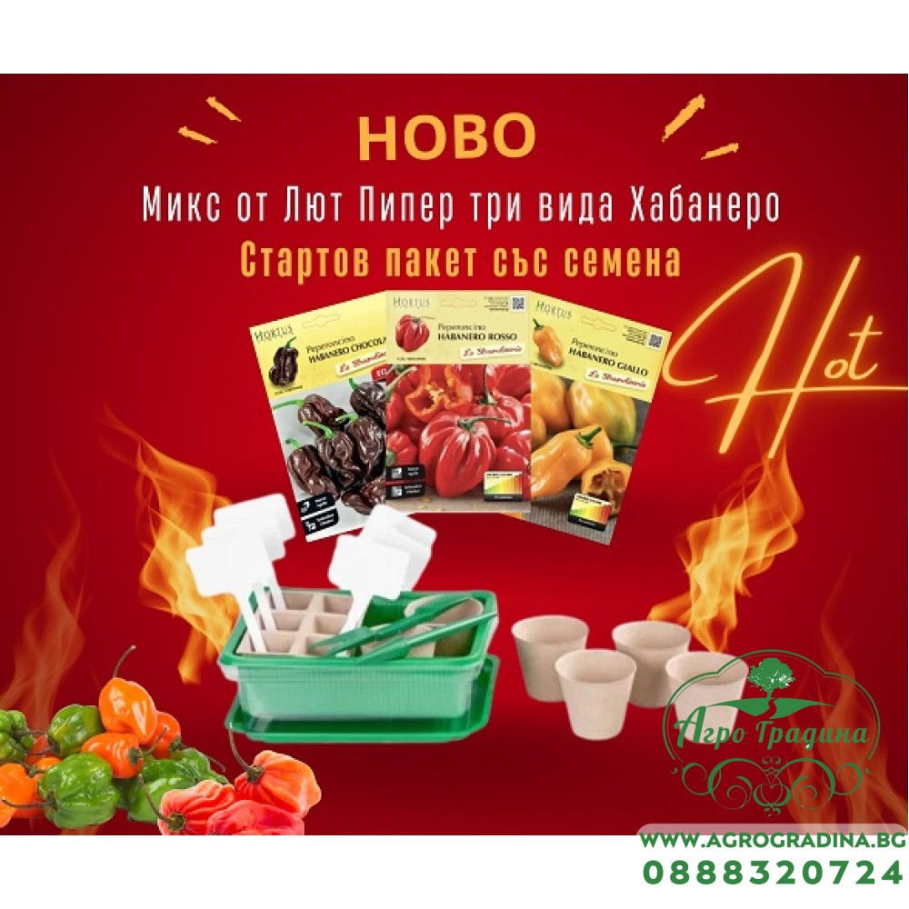 Стартов пакет Микс от лют пипер - три вида Хабанеро Започнете своето приключение в света на лютото с agrogradina.bg и нашия стартов пакет и се насладете на удоволствието от собствено производство на световно известнит... Прочети повече...