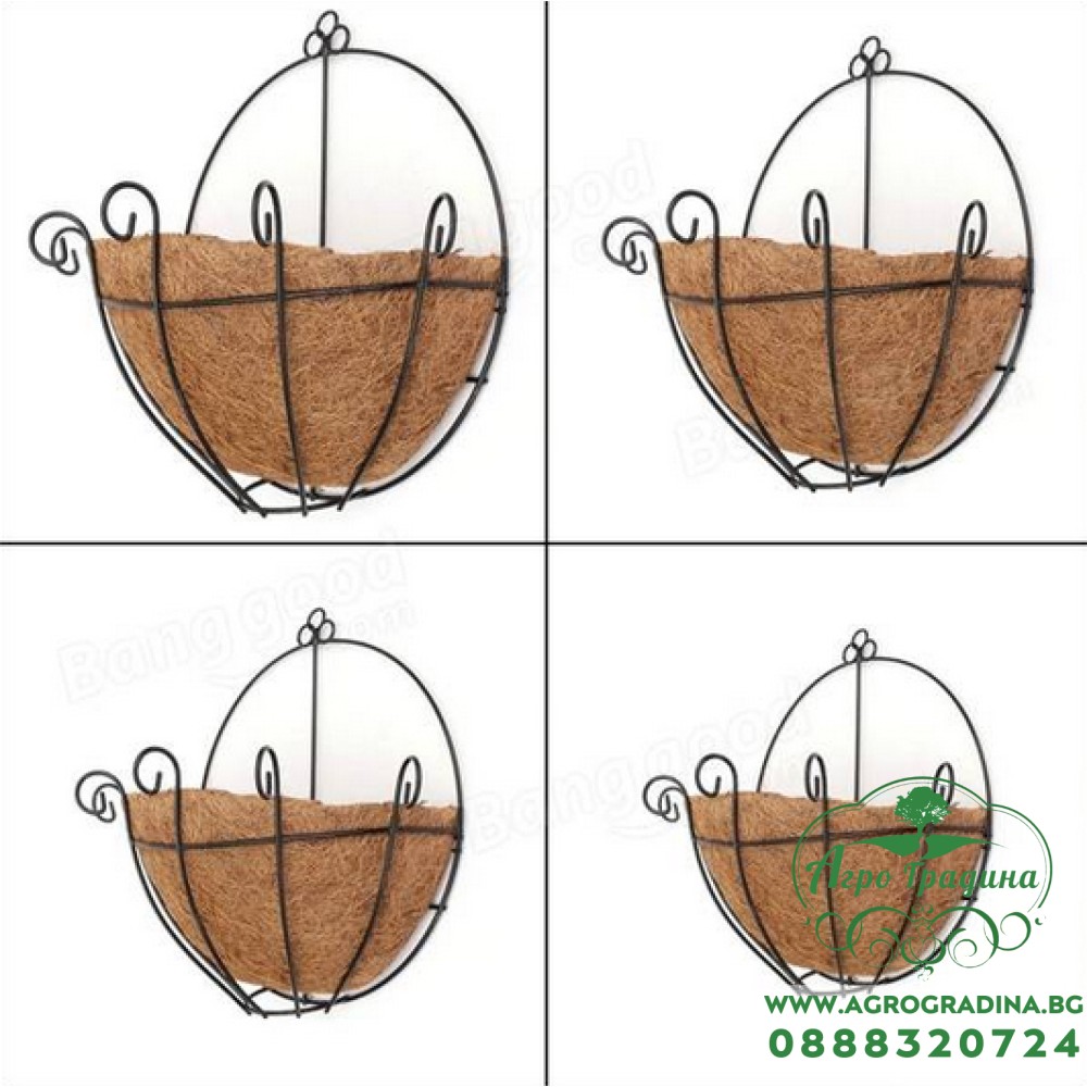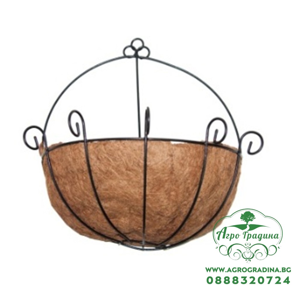 Придайте специфичен стил на Вашата градина с детайли изработени от ковано желязо и саксия от кокосови влакна. Практична и лесна за закачане и преместване.