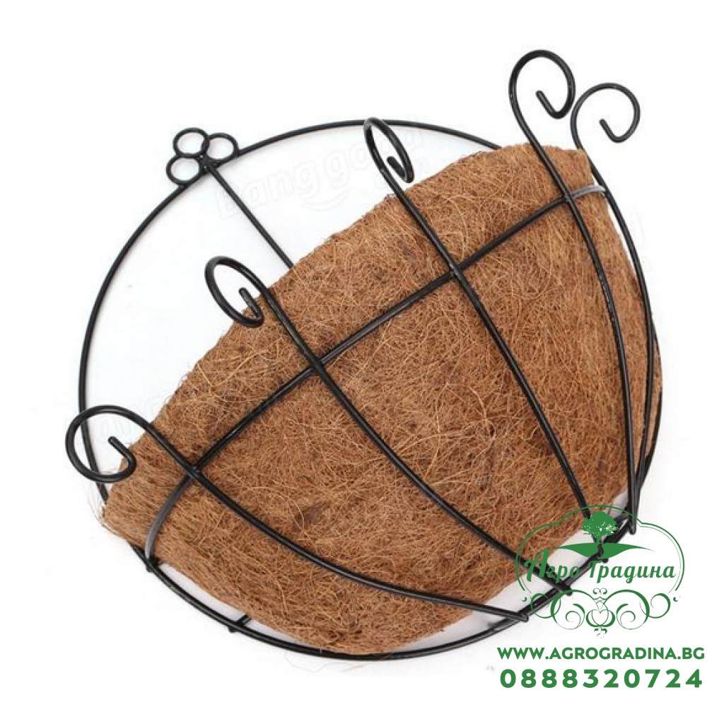 Конструкцията е изработена от ковано желязо и то позволява бързото и сигурно закачане. Кокосовите влакна не задържат излишна влага в саксията.