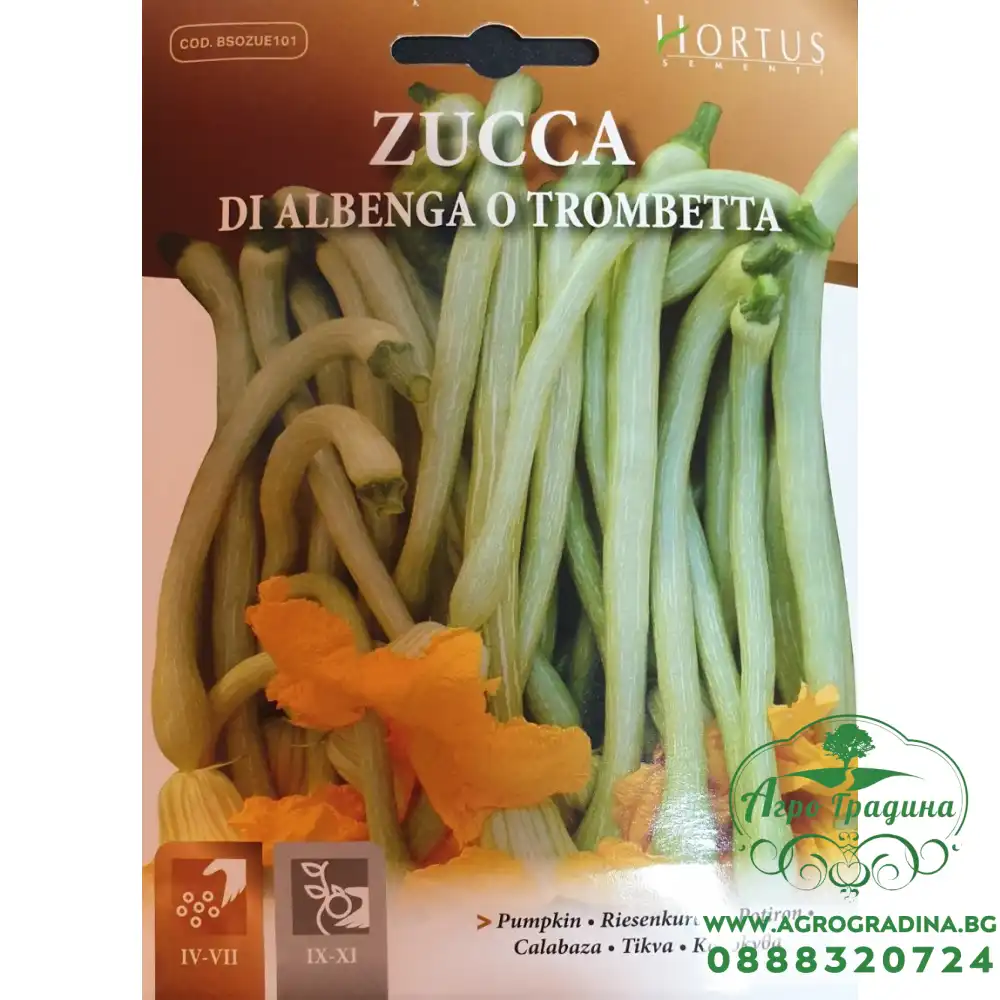 Тиква Албенга Tромпет (дълга, ядливи цветове) / Trombetta di Albenga Нашият онлайн магазин agrogradina.bg представя на вашето внимание семена за Тиква Албенга Tромпет / Trombetta di Albenga Тиквата Trombetta di Alb... Прочети повече...