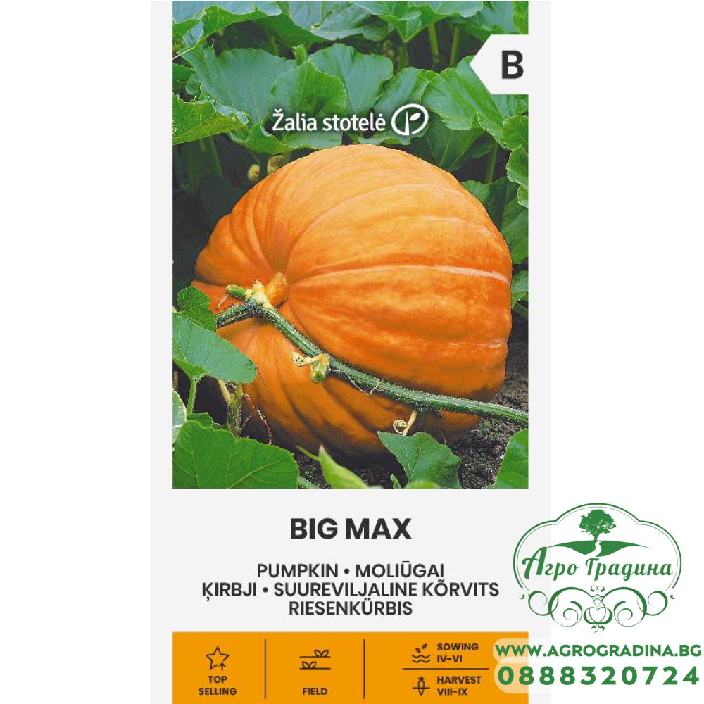 Тиква Гигант "Биг Макс" / Cucurbita Maxima Duchesne В нашият онлайн магазин ви представяме семена за тиква гигант Биг Макс / Cucurbita Maxima Duchesne Big Max - сорт, чиито плодове достигат 50- 70 кг. Късна, един ... Прочети повече...