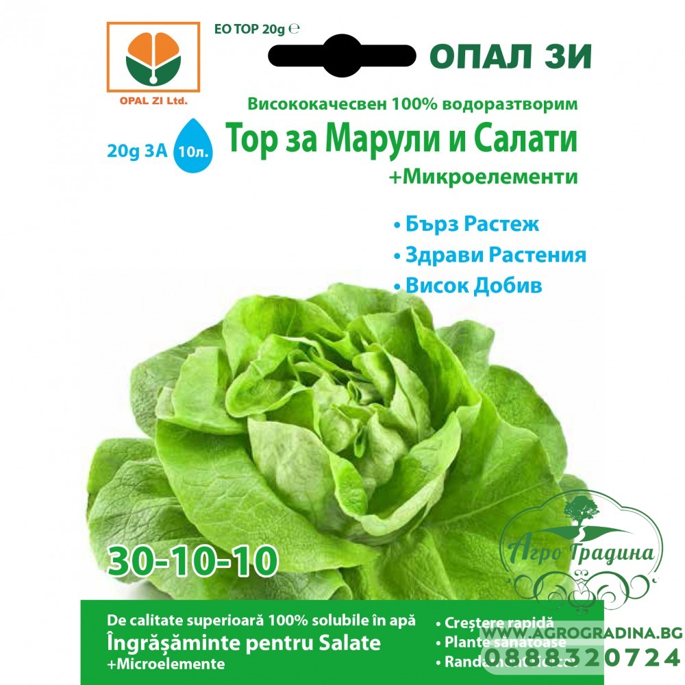 Тор за марули и салати + микроелементи (30-10-10) Тази формула значително подобрява вегетативния период. Изключително подходящ тор за Марули и Салати, тък като подпомага бързия растеж, високия добив и развитието на бу... Прочети повече...