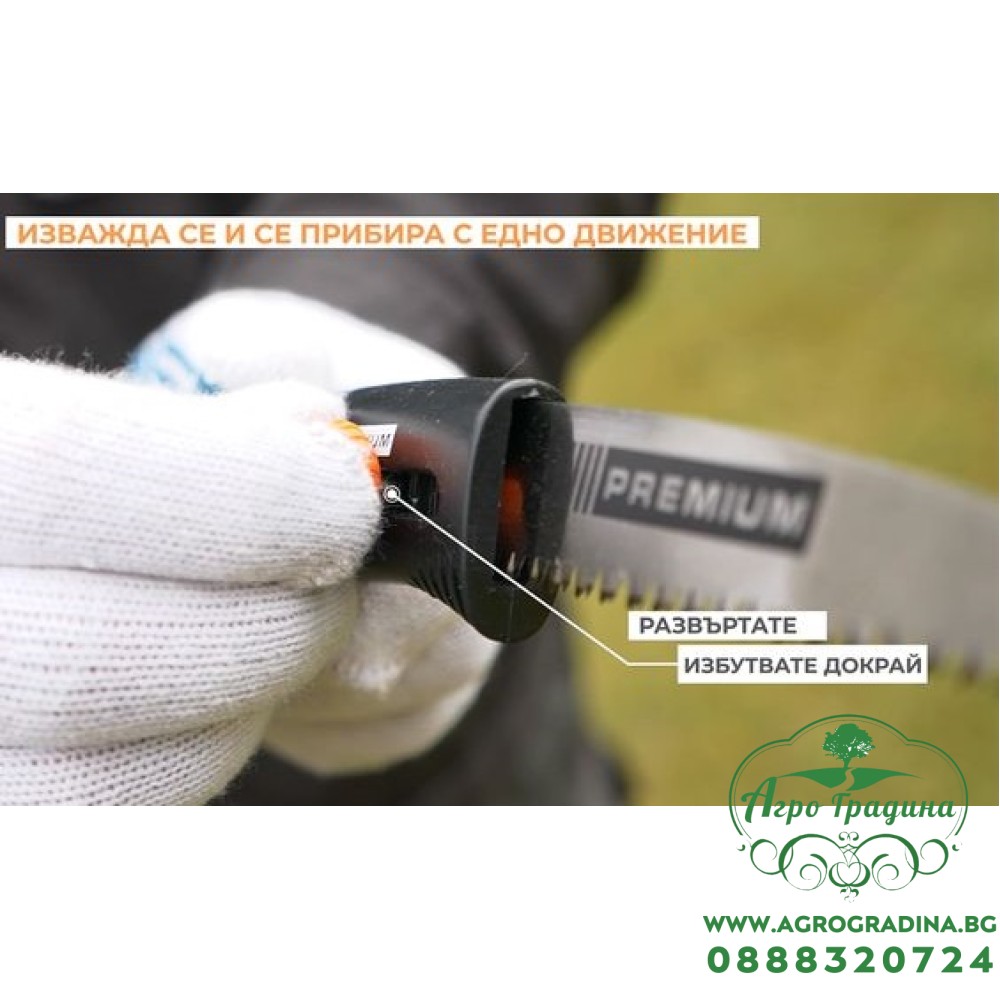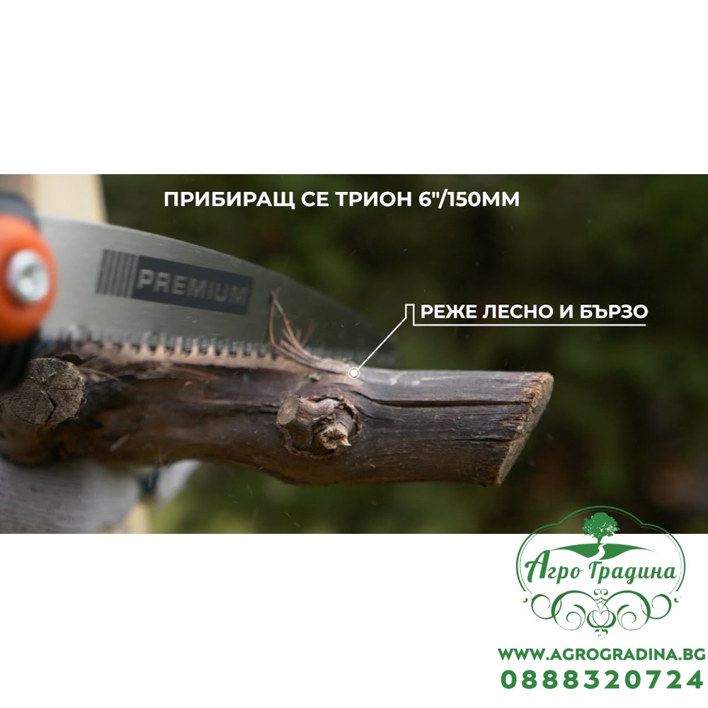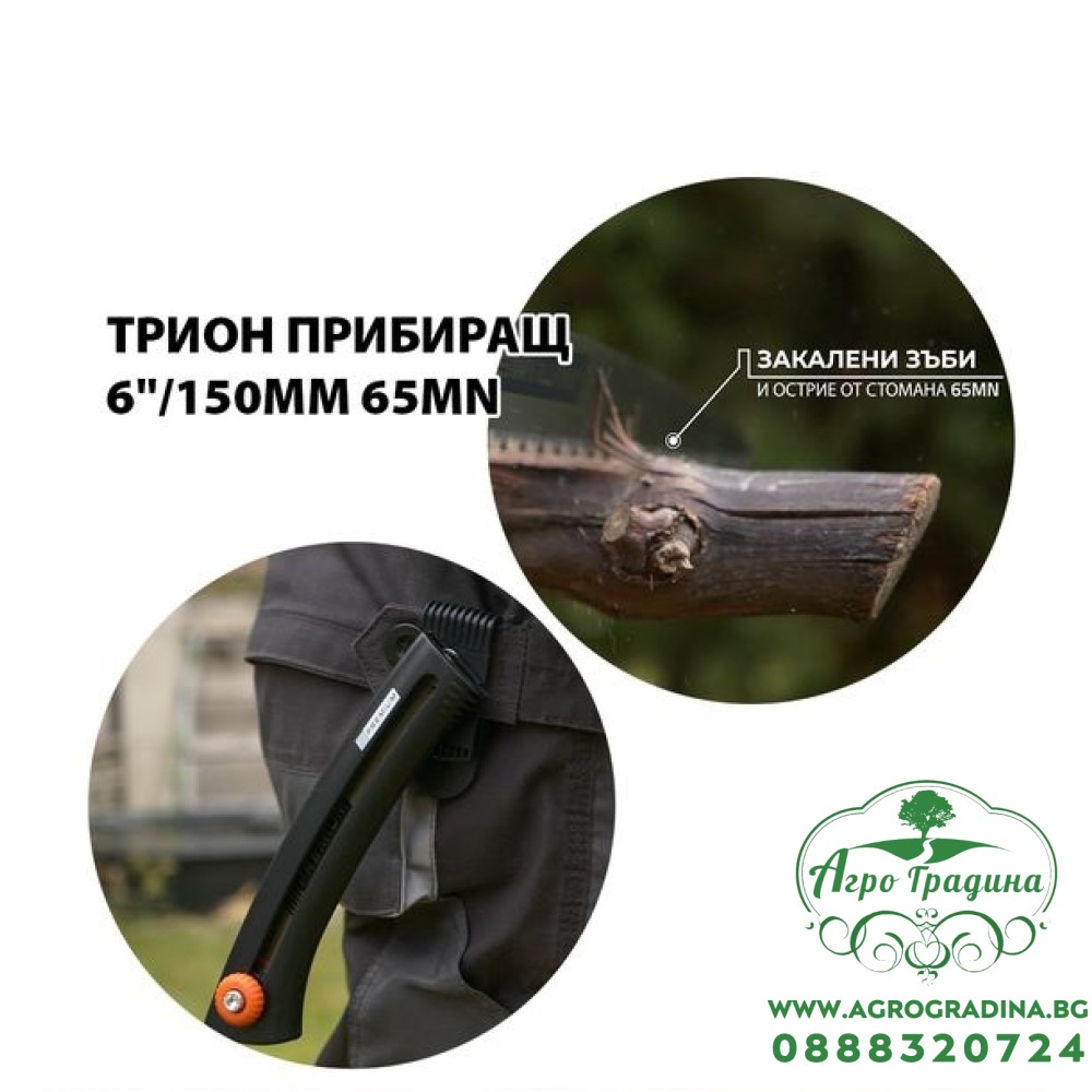 Трион прибиращ се e със закалени зъби и острие от стомана 65MN. Снабден с 8 зъба на инч/ 8TPI, дължина на острието 150мм и механизъм за прибиране в дръжката. Jози трион е неизменен помощник на всеки майстор дърводелц и добро попълнение в инструментариума за градината. За по-голямо удобство трионът е снабден със закачалка за колан.