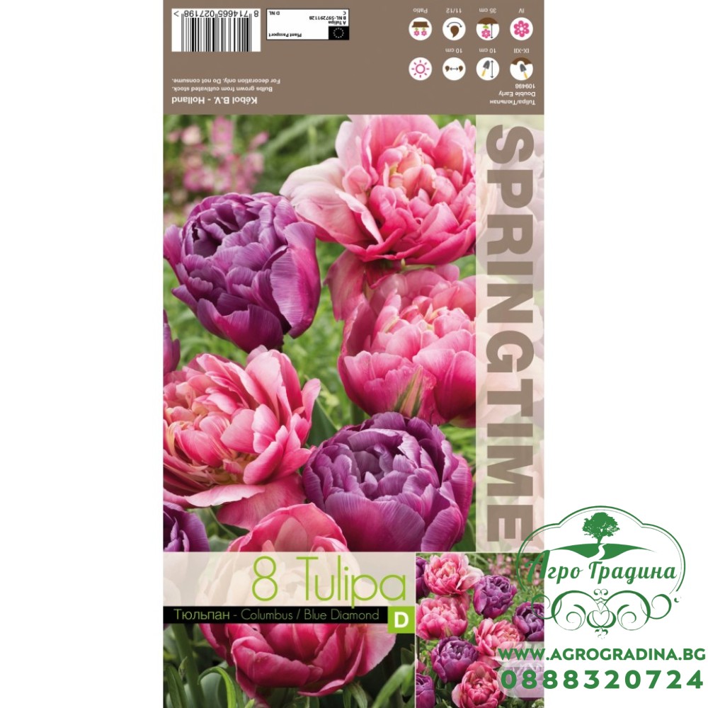 Онлайн магазин agrogradina.bg представя Лале Микс Колумб / Син диаманд / Tulipa MIX Columbus / Blue Diamond - 8 бр луковици.