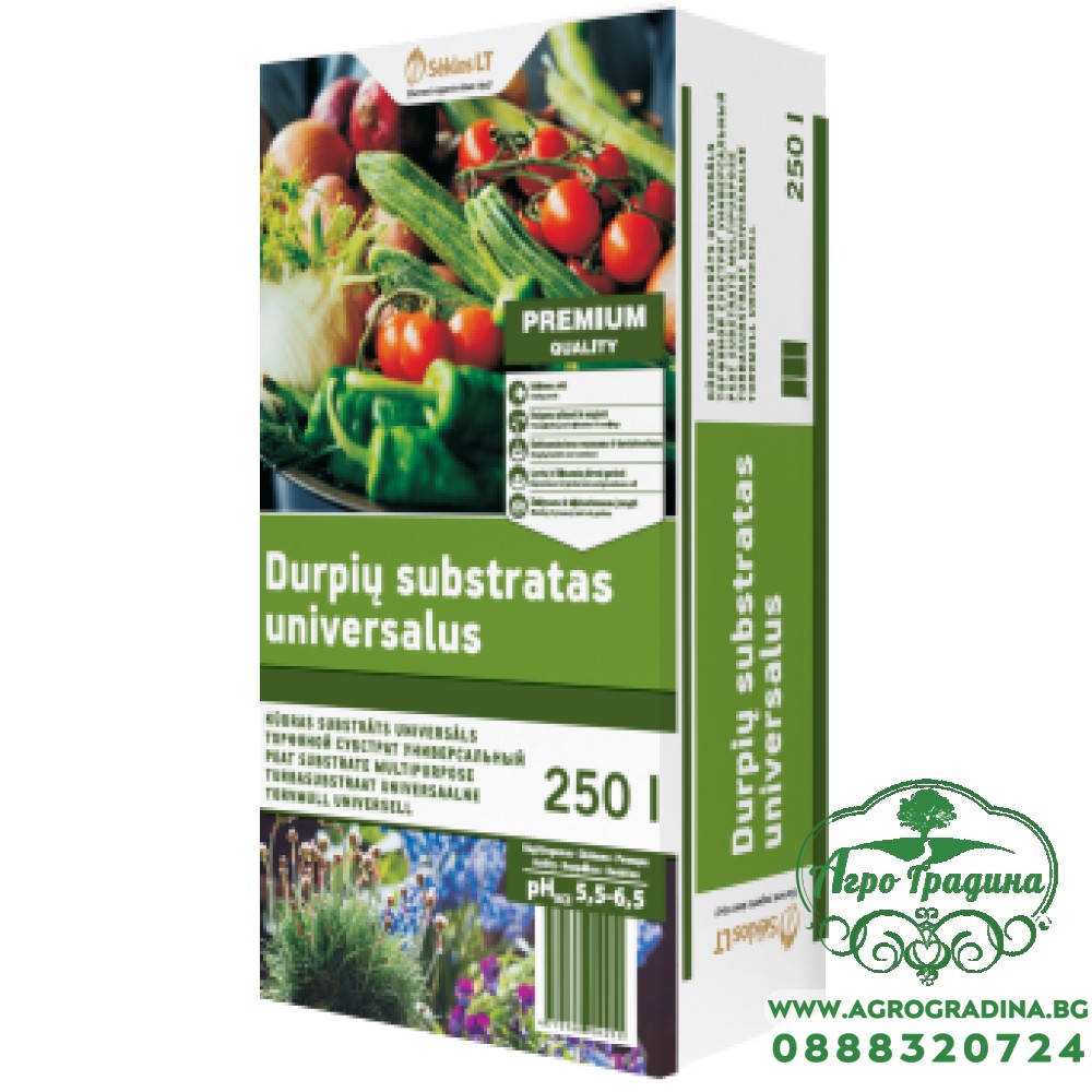 Онлайн магазин agrogradina.bg предлага универсален торфен субстрат - професионално приготвен продукт, създаден по специална рецепта от екологично чист торф, предназначен за отглеждане и презасаждане на саксии и цветя, зеленчуци и разсад на открита и затворена почва, допълване и обогатяване на почвата за засаждане.