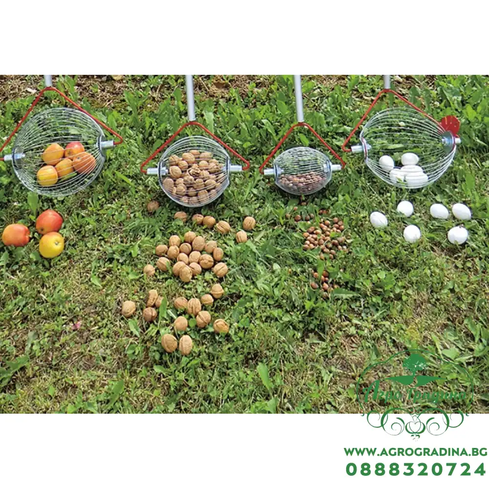 Ръчно приспособление за събиране на орех и други плодове от земята. Значително облекчава процеса при събиране и спестява Вашето време и сили. Предлага се в три различни размера за събиране на плодове с диаметър от 20 до 100 мм.