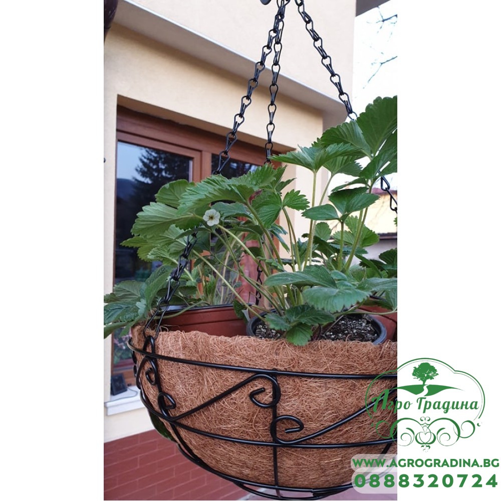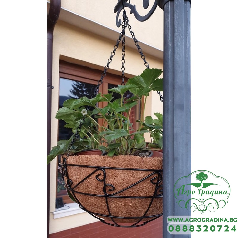 Висяща кашпа (Ковано желязо) с кокос и целогодишни Ягоди Придайте специфичен стил на Вашата градина с детайло изработена от ковано желязо кашпа и саксия от кокосови влакна. Практична и лесна за закачане и преместване.... Прочети повече...