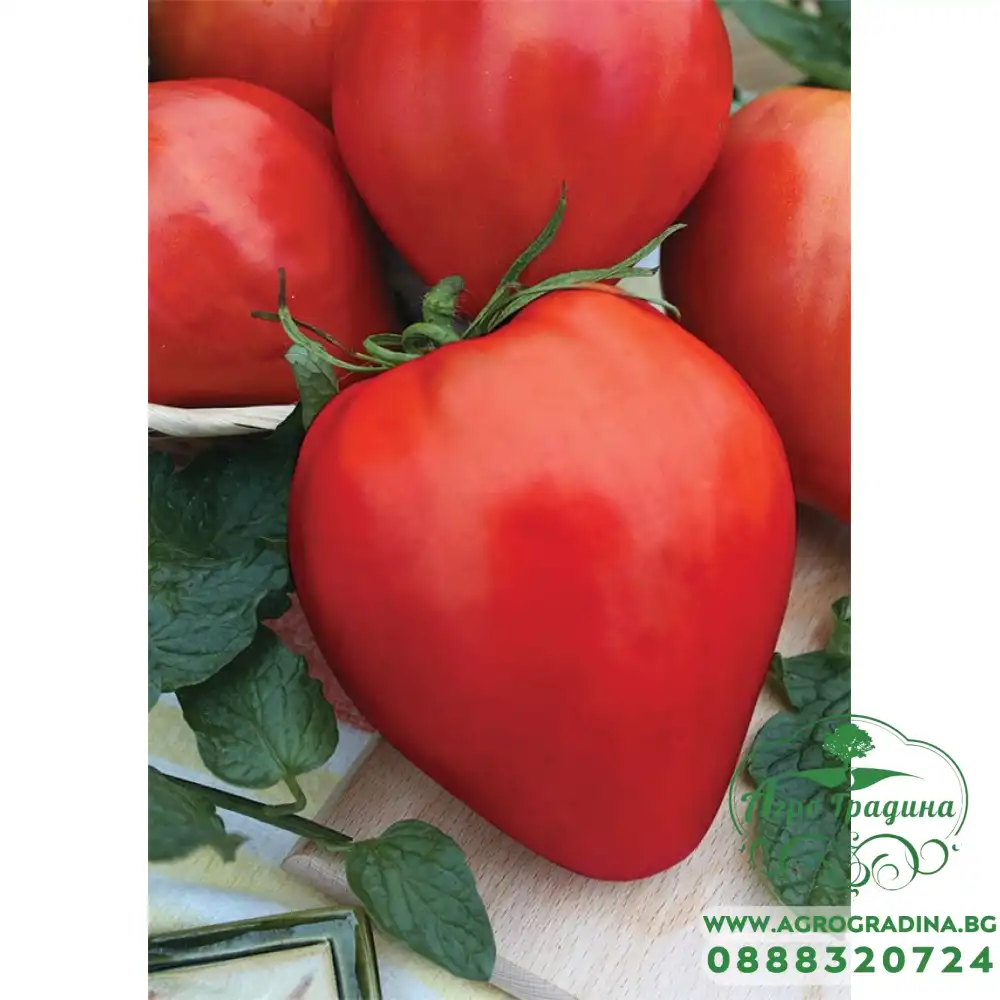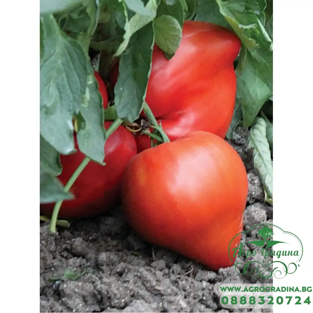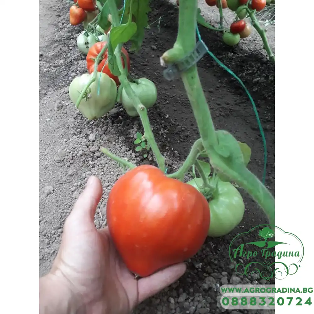 Индетерминантен (високорастящ), директен, средноранен до късен сорт домати, с много едри плодове. Растенията са мощно развити, с неограничен растеж на вегетационния връх. Плодовете са удължено-сърцевидни, слабо оребрени около дръжчената ямичка, червени, много едри, със средно тегло 350-500 гр., като достигат и до 1 кг. Те са средно твърди, плътни и месести, с уникални вкусови качества, рязко отличаващи се от останалите сортове домати. Сортът е подходящ за средно ранно производство както на открити площи, така и в полиетиленови оранжерии. Подходящ за прясна консумация.