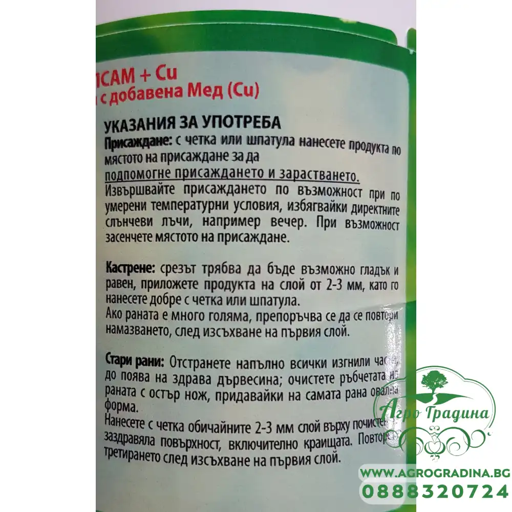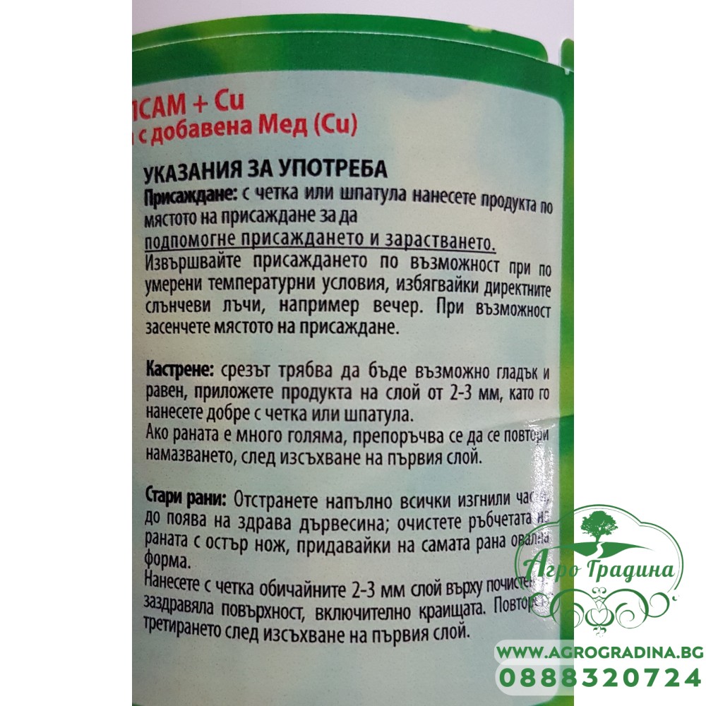 На нашият онлайн магазин ви представяме овощарска замазка фитобалсам + Cu (с добавена Мед).